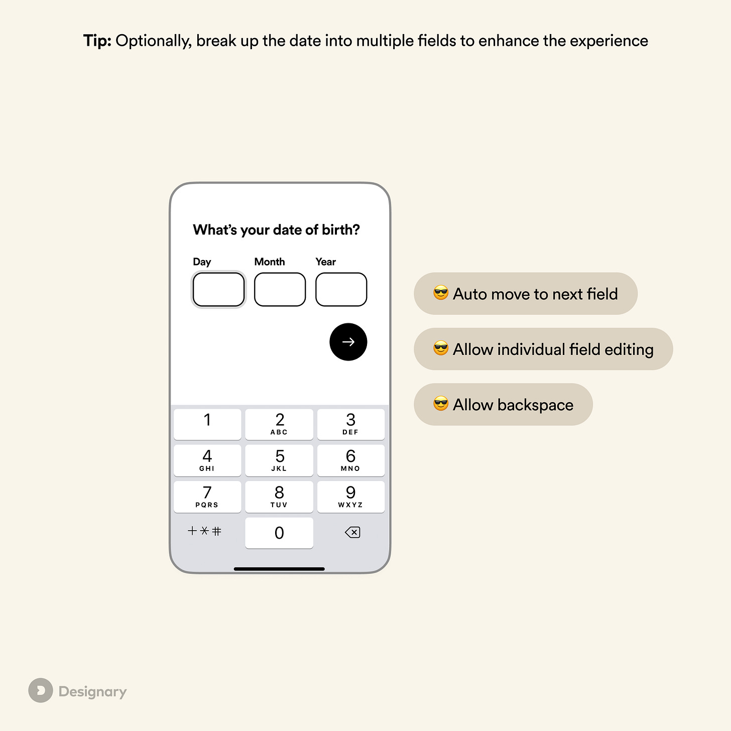 Pro tip: Use number fields when asking for a user’s date of birth.
